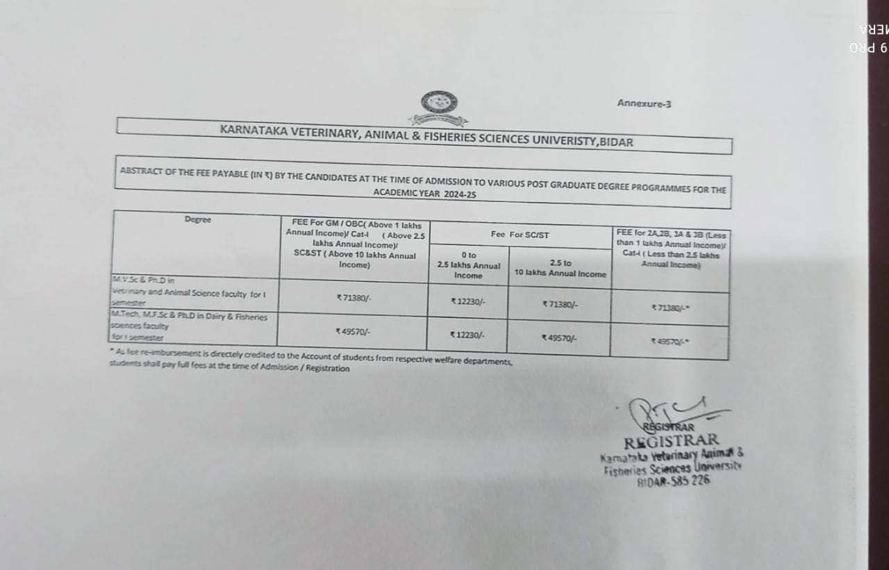Kvafsu PG Admission 2024-25 Walk-in/Self Finance/NRI Quota Admission Notification