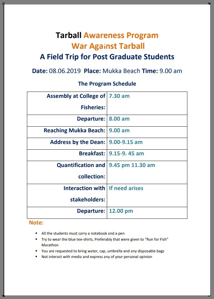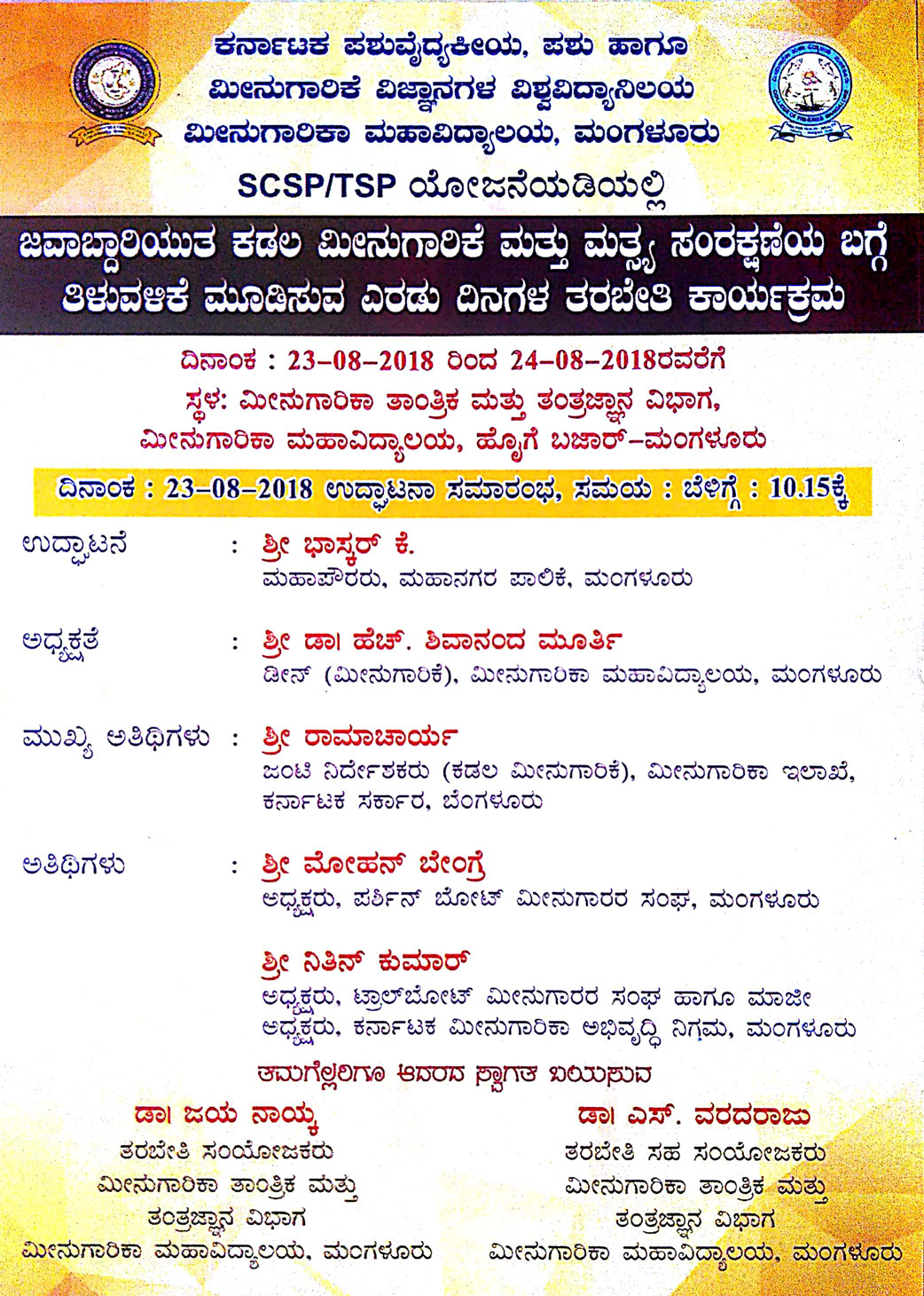 2 day training programme on Responsible Fisheries and Conservation 23-8-2018 to 24-8-2018