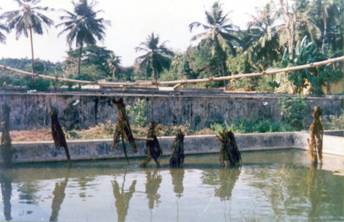 Artificial substrate (sugarcane Bagasse) in ponds