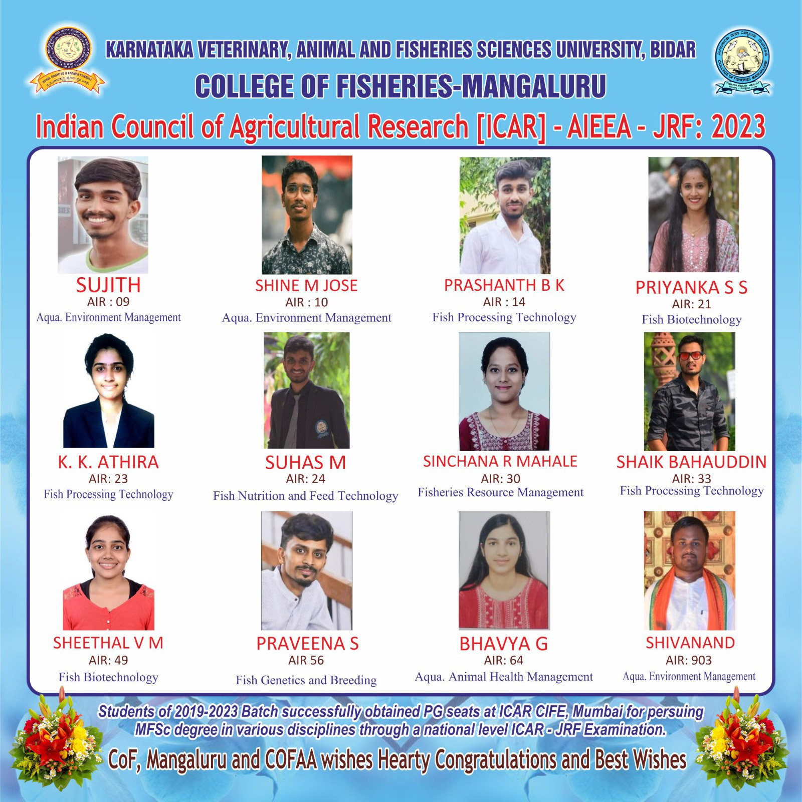 All India ICAR-JRF exam 2018-19 rank holders, CoF, Mangalore