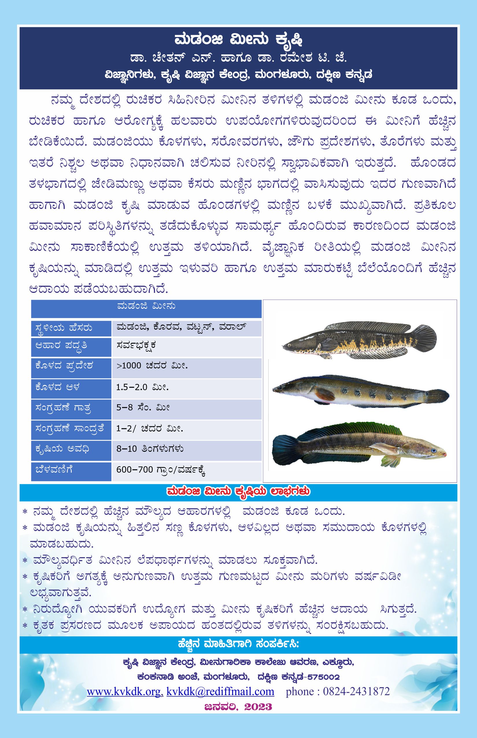 ಪ್ರೌಢಾವಸ್ಥೆಗೆ ಬರುವ ಭಾರತದ ಗೆಂಡೆ ಮೀನುಗಳ ಪಾಲನೆ ಮತ್ತು ಪ್ರಚೋದಿತ ಸಂತಾನೋತ್ಪತ್ತಿ | |